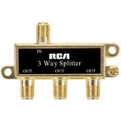 Splits a coaxial video signal from cable TV antenna or a VCR for connection to multiple TV's/VCR'sFrequency: 5 to 900MHz3-wayRCA VH48 Splitters (3-way) Feature