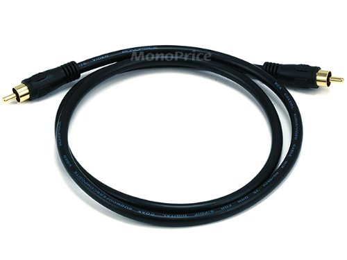 3ft Coaxial Audio/Video RCA Cable M/M RG59U 75ohm (for S/PDIF, Digital Coax, Subwoofer + Composite Video) This cable is used to connect DVD players to audio receivers, satellite boxes and cable boxes to audio receivers, computer audio equipment, or any other equipment that supports digital coaxial (S/PDIF) interface interconnect. This cable allows jitter-free transfer of digital audio signals. The low-loss cable design includes a pure copper center conductor and shielding to preserve signal strength and minimize noise. Gold-plated RCA connectors and pins provide solid corrosion-free contact. Features: - Connectors: single RCA plug (male) to single RCA plug (male). - 24k Gold plated connectors ensure long-lasting corrosion-free connections. - Fully molded connectors provide excellent strain relief. - High-quality coaxial wire with copper braid shield reduces unwanted noise and distortion. - Gold-plated RCA connectors give you solid corrosion-free contact. - Easy installation with non slip rubber grip. - Improves digital signal delivery as compared to standard RCA type audio cables. - True digital signal maintained by high quality materials and connectors. - 99.999% pure copper non-OFC conductor. - High-density double shielding for maximum rejection of EMI and RFI. This cable can be used for: DVD Player DVD Audio Player SA-CD Player CD Player D-VHS Player Game Console A/V Receiver Digital Video Recorder Satellite Receiver Digital Cable Box Computer Sound Card Home Theater Personal Computer (HTPC)S/PDIF RG59U 75 Ohm 3 feet Coaxial Digital Audio CableItem Brand